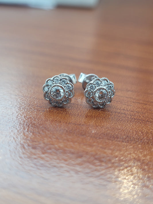 18ct Flower Diamond Milgrain Earrings