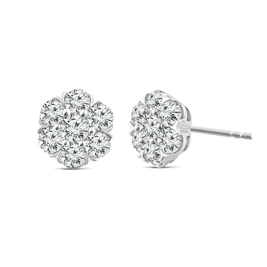 2.00ct Lab Grown Diamond Cluster Stud Earrings in 18K White Gold