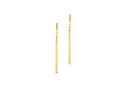9K Yellow Gold Round Bar Drop Earrings 41mm