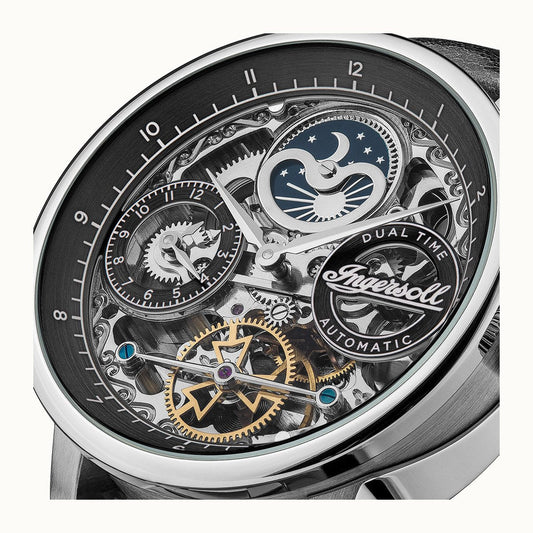 Ingersoll The Outrider 44mm Skeleton Dial Black Leather Strap Watch