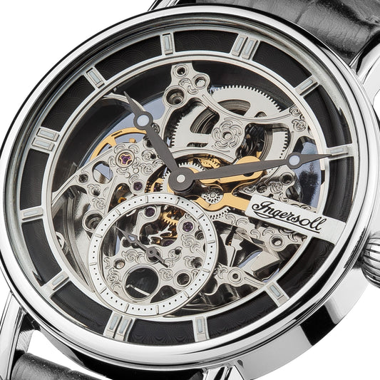 Ingersoll The Spirit 46mm Skeleton Dial Black Leather Strap Watch
