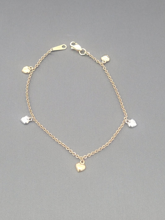 9ct Two Tone Heart Bracelet
