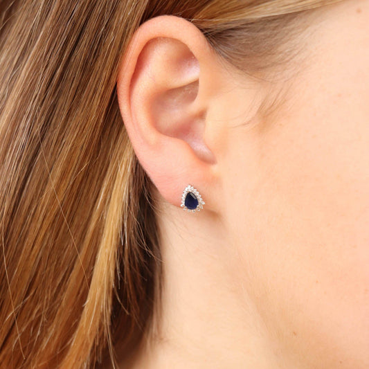 Sapphire Pear Earrings with 0.12ct Diamonds in 9K White Gold