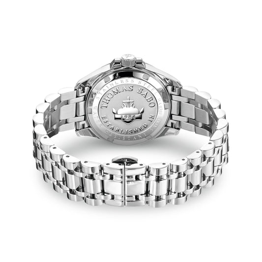 Thanks to the THOMAS SABO Watches Collection for women, telling the time has never been so glamorous! The range includes watches for women who are confident about their look, who do not compromise on quality in order to wear the latest fashion trends. THOMAS SABO Watches are stunning pieces of jewellery featuring a Japanese Miyota quartz movement: ultra-stylish and feminine on the outside, resistant and precise in the inside. The range includes over 60 striking models in a variety of shapes, materials, colours and designs; they all have a hardened, non-reflecting mineral glass with sapphire coating and are made in stainless steel or ceramic, with variations of stainless steel and ceramic, rose gold and yellow gold coloured stainless steel and with the addition of sparkly zirconia pave and crystals both on the bezel and in the dial.
