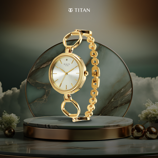 Titan Raga Viva Golden Dial Analog Quartz Metal Strap Watch for Women