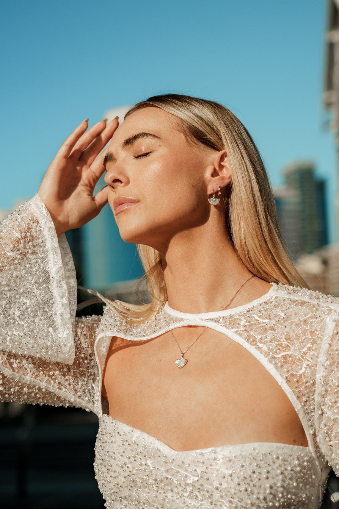 Suspended on a 45cm chain with an adjustable ball slider, this pendant offers versatility in length, allowing you to customise your look for any occasion. With its unique blend of natural beauty and radiant sparkle, the Mother of Pearl Fan Pendant makes a sophisticated statement and is perfect for layering or wearing alone. Match with the Mother Of Pearl fan earrings to elevate your jewellery collection with this stunning piece that effortlessly combines style and elegance.