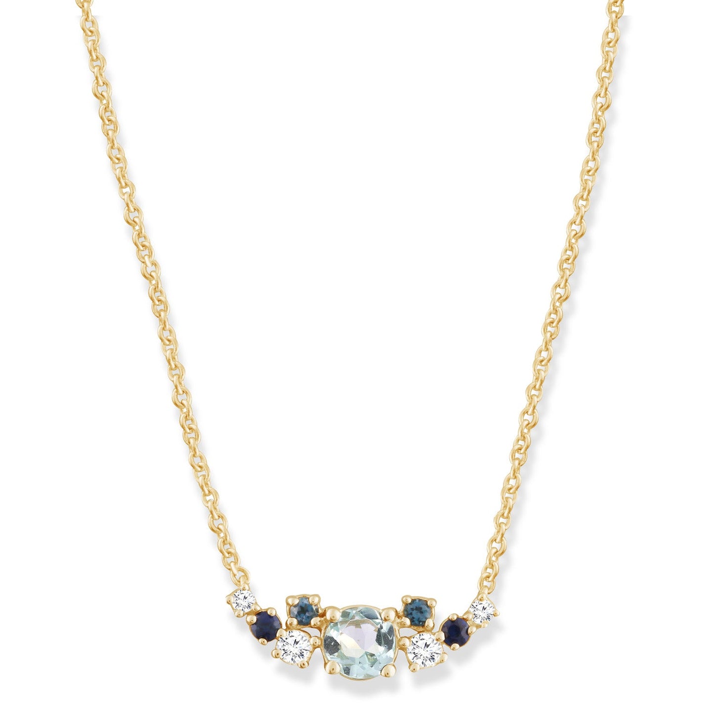 Simply beautiful, this Diamond and Aquamarine Necklace with 0.08ct Diamonds in 9K Yellow Gold features 9 dazzling diamonds for an absolutely stunning look. Polished with an elegant shine, pair this with a matching Yellow gold accessory for the ultimate look.