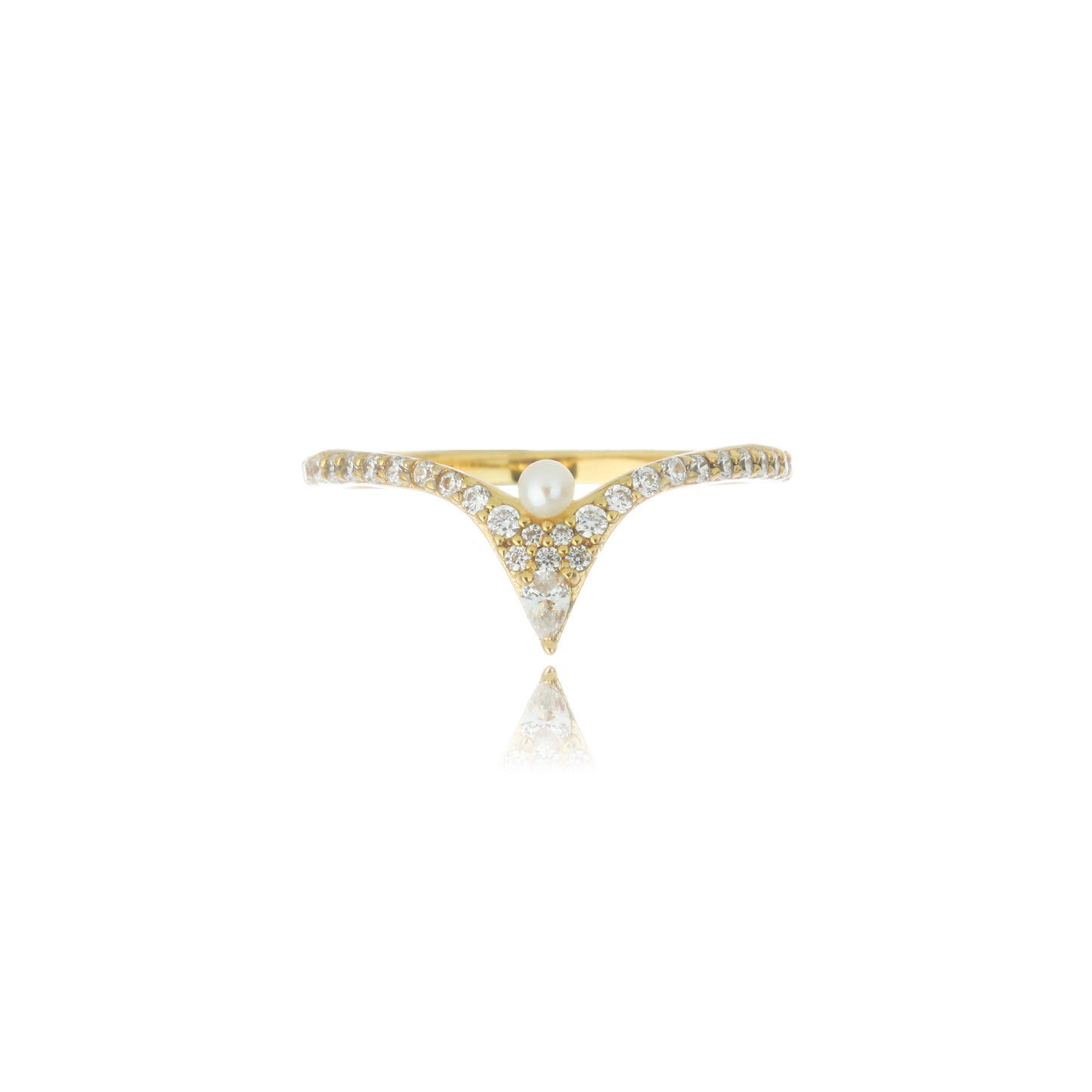 The Georgini Oceans Scarborough Freshwater Pearl Ring in gold is a beautiful and elegant piece of jewellery with a lustrous 2mm freshwater pearl as its centrepiece. The pearl is complemented by a delicate wishbone band accented with cubic zirconia stones for added sparkle.