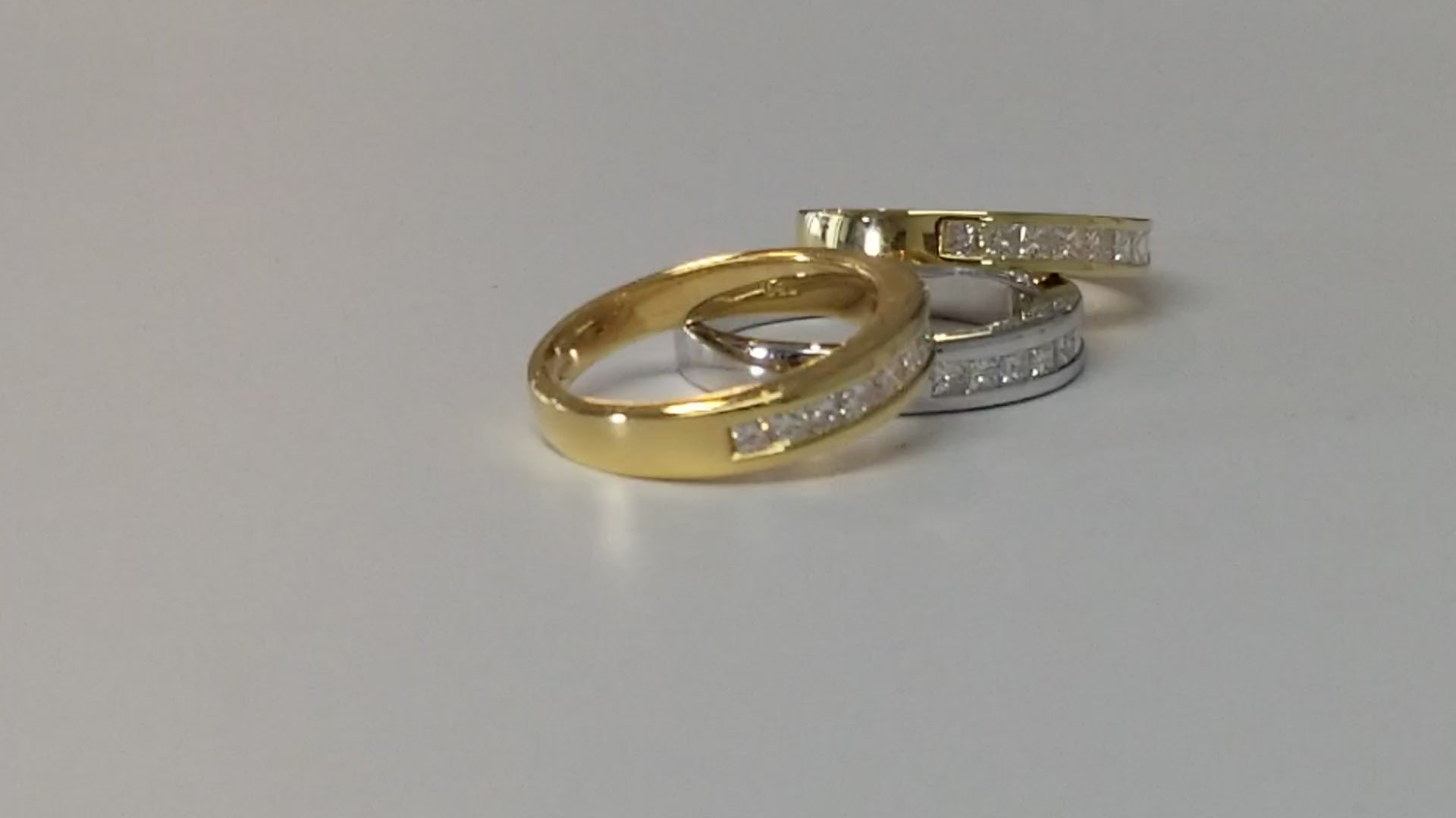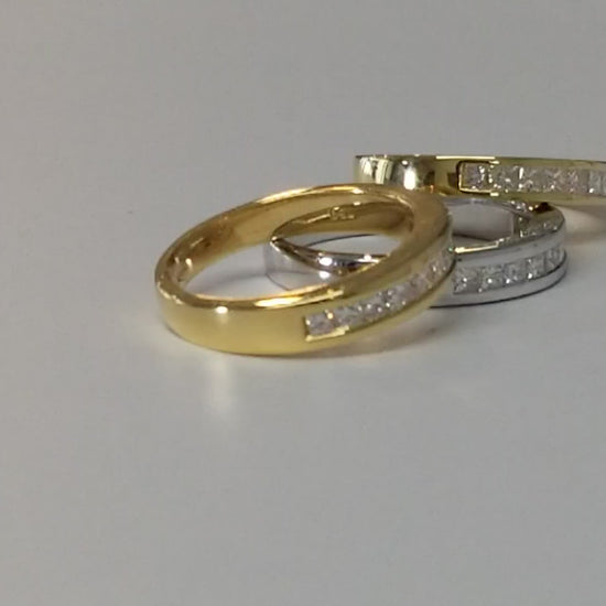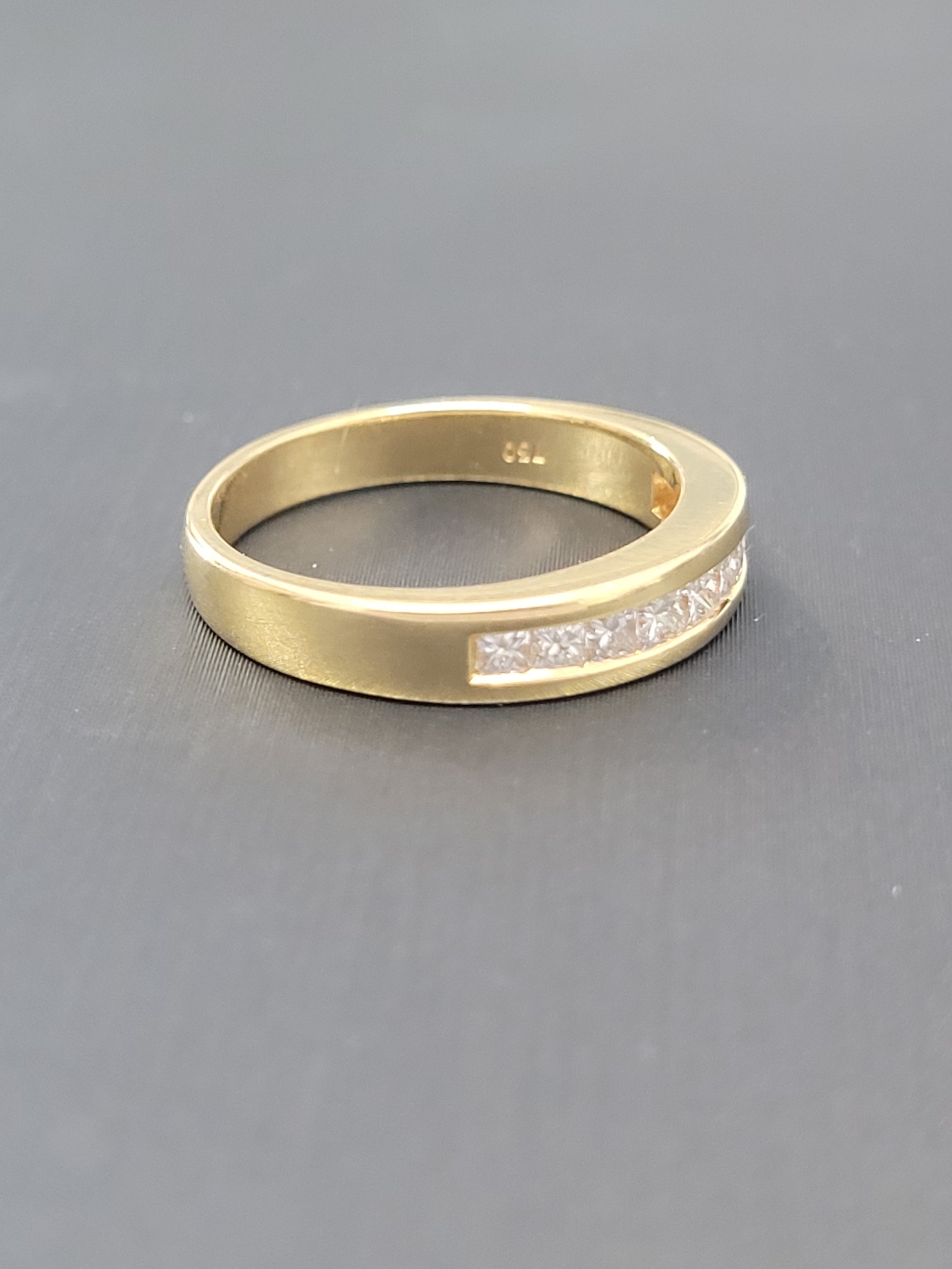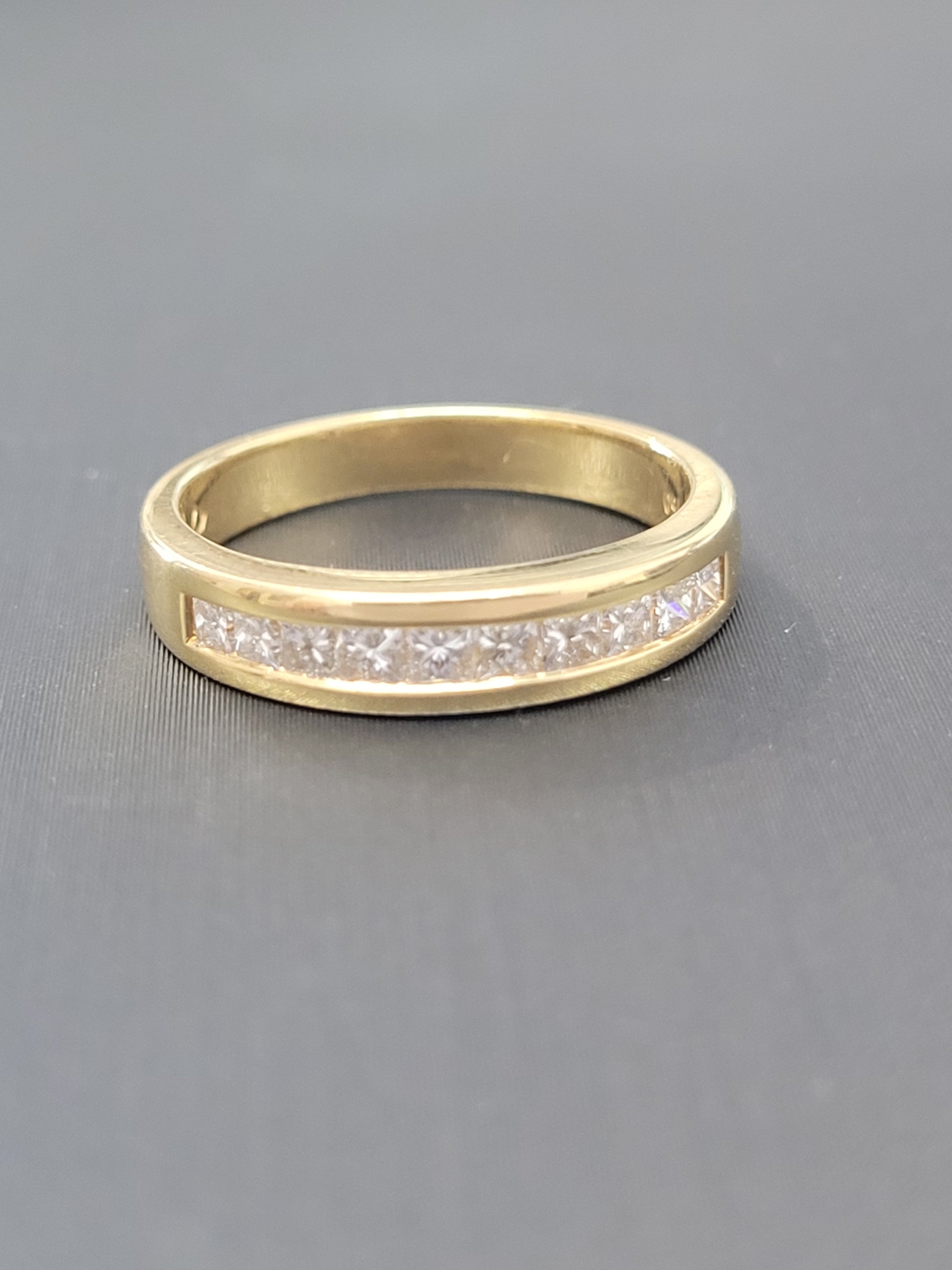 A Beautiful 18ct Yellow Gold Channel Set Princess Cut Diamond Band.