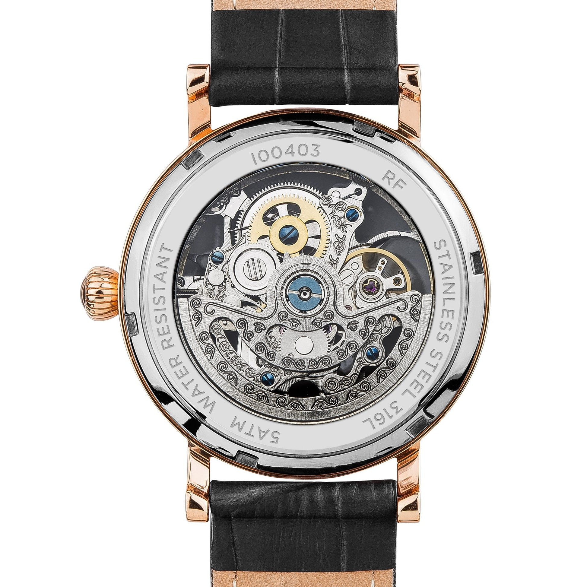 The Herald I00403 watch is an exquisite time piece with a captivating skeletonised movement, finished to the highest standard by stainless steel rose gold casing.