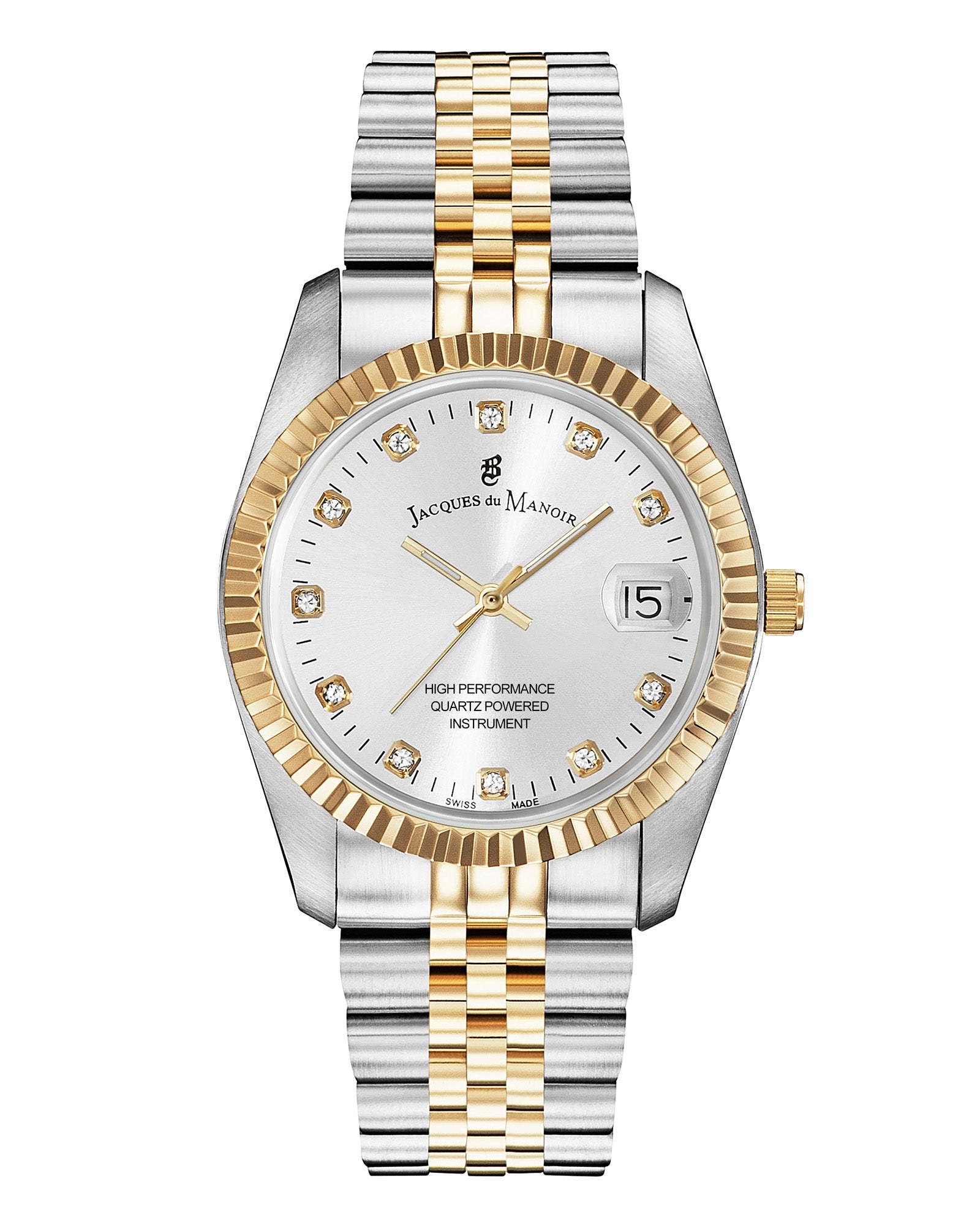 The INSPIRATION for today's modern woman is refreshingly different. Shimmering metal in a firework of extraordinary combinations is the focal point of this fascinating ladies’ watch from the current JACQUES DU MANOIR collection. From a distance, you could almost mistake the analogue metallic watch for a unisex model. A closer look, however, reveals the magical feminine charm of the details in the INSPIRATION design. This watch will always grab people's attention and accentuate your outfit perfectly.