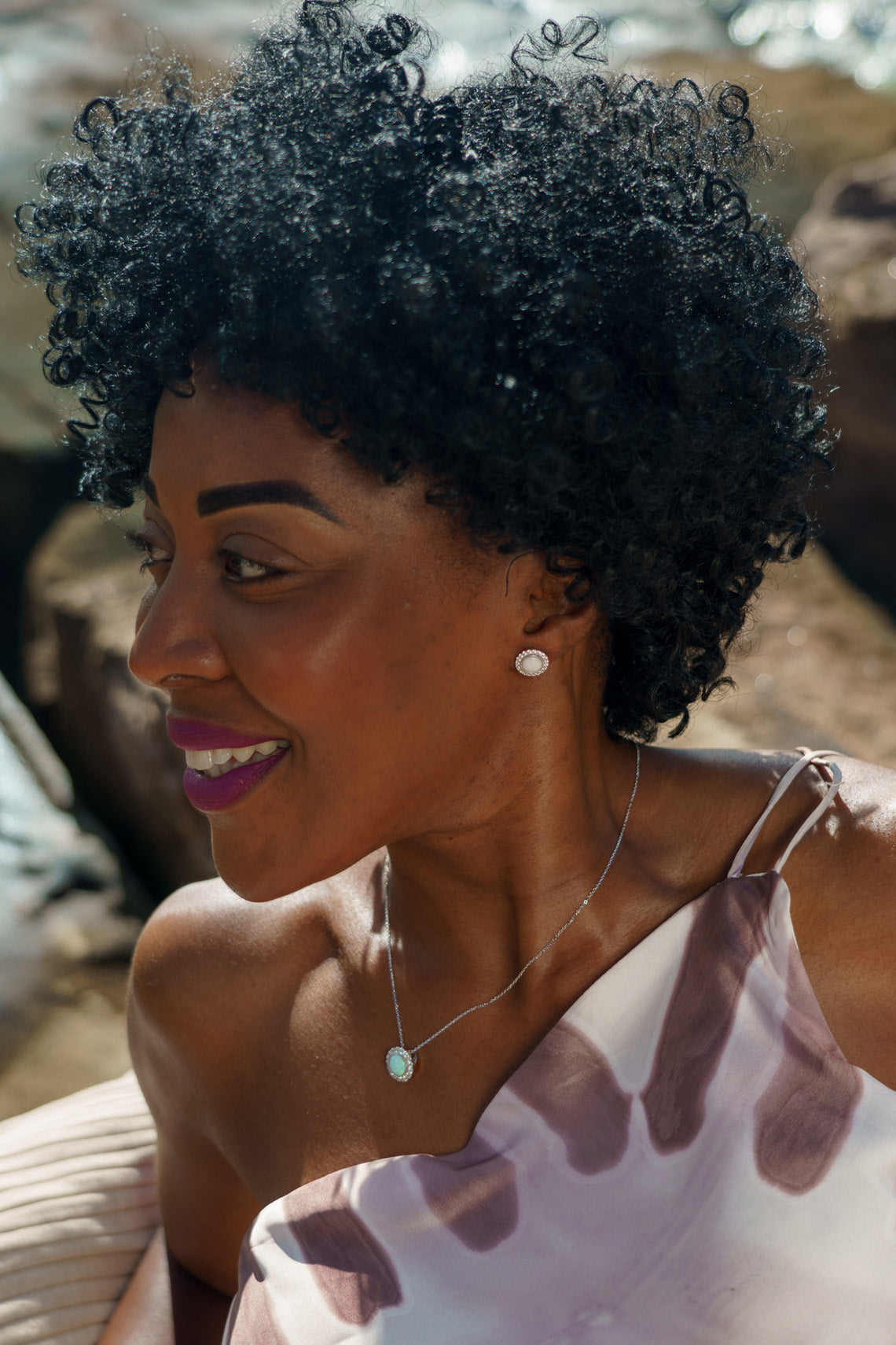The Marrinawi Pendant from the Opal Glow Collection is a tribute to Georgini's classic halo design, inspired by the beauty of Marrinawi Cove on Sydney Harbour. This pendant features a shimmering created opal encircled by sparkling white cubic zirconia, capturing the essence of the cove's sparkling waters. Measuring approximately 12mm wide, it is crafted from Rhodium Plated 925 Sterling Silver and comes on a 41cm chain with a 4cm extension, offering timeless elegance with a coastal touch. Designer Note: Marrinawi Cove, near Barangaroo Reserve in Sydney Harbour, is a culturally significant and peaceful spot. Named from an Aboriginal word meaning "large canoe," it honours the maritime traditions of the Gadigal people. The cove’s calm waters and sandstone shorelines provide a tranquil escape while reflecting the area’s Indigenous heritage. Georgini acknowledges and pays respect to the past, present and future Traditional Custodians and Elders of this nation and the continuation of cultural, spiritual and educational practices of Aboriginal and Torres Strait Islander peoples.