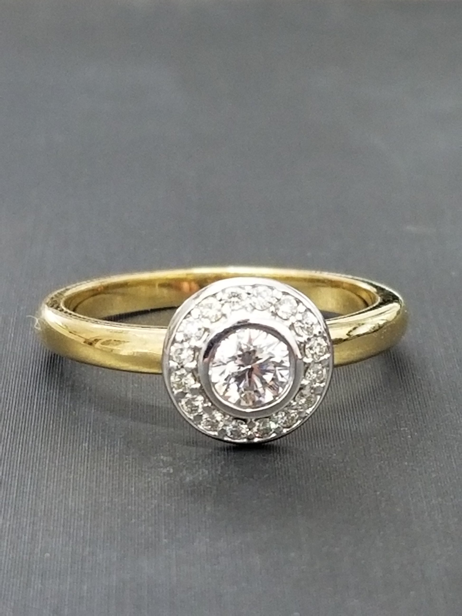 The Pave Bezel Brilliance . A Beautiful Solid 18ct Yellow Gold Band ft 18ct White Gold Diamond Bezel & Diamond Halo.