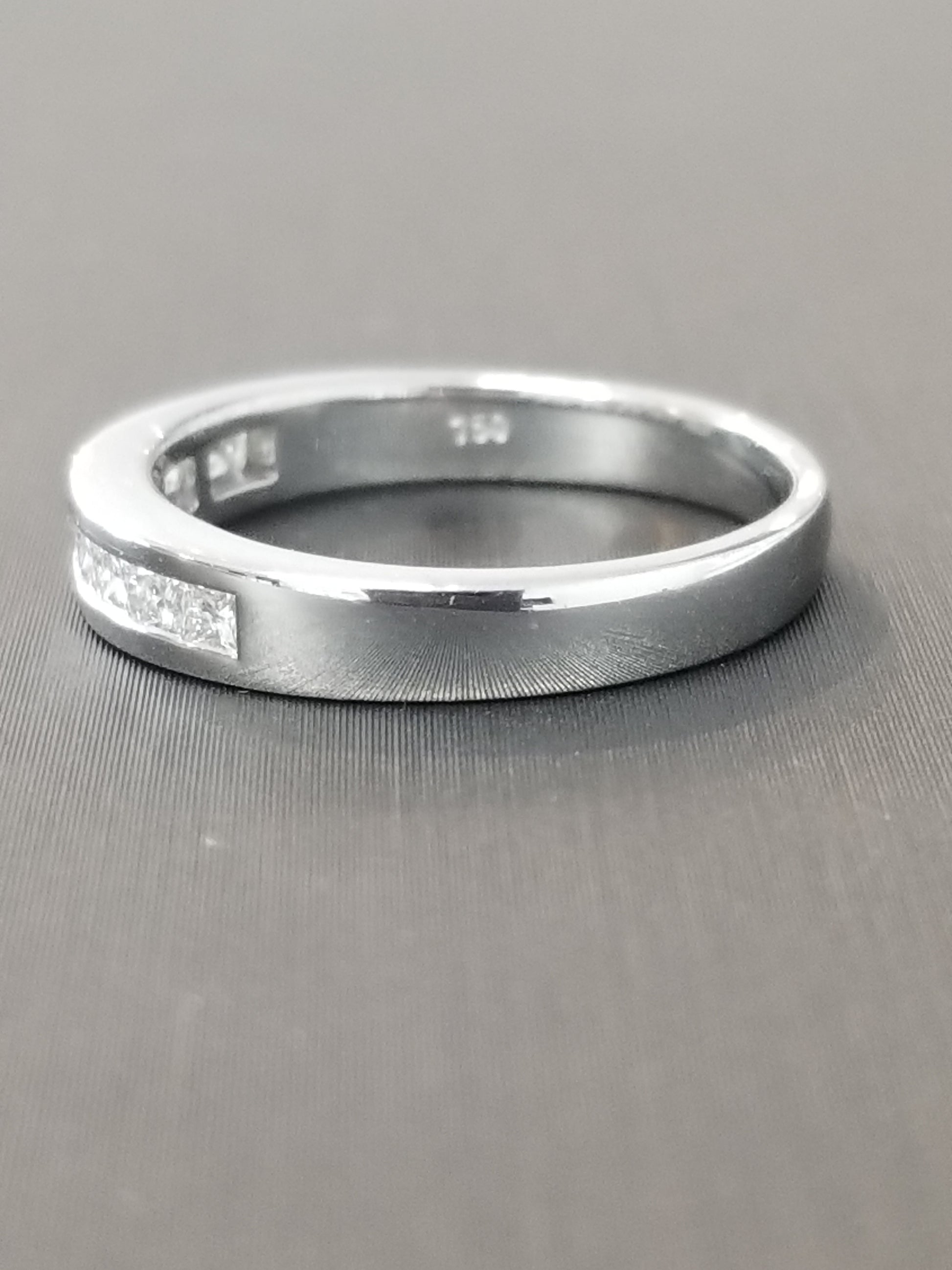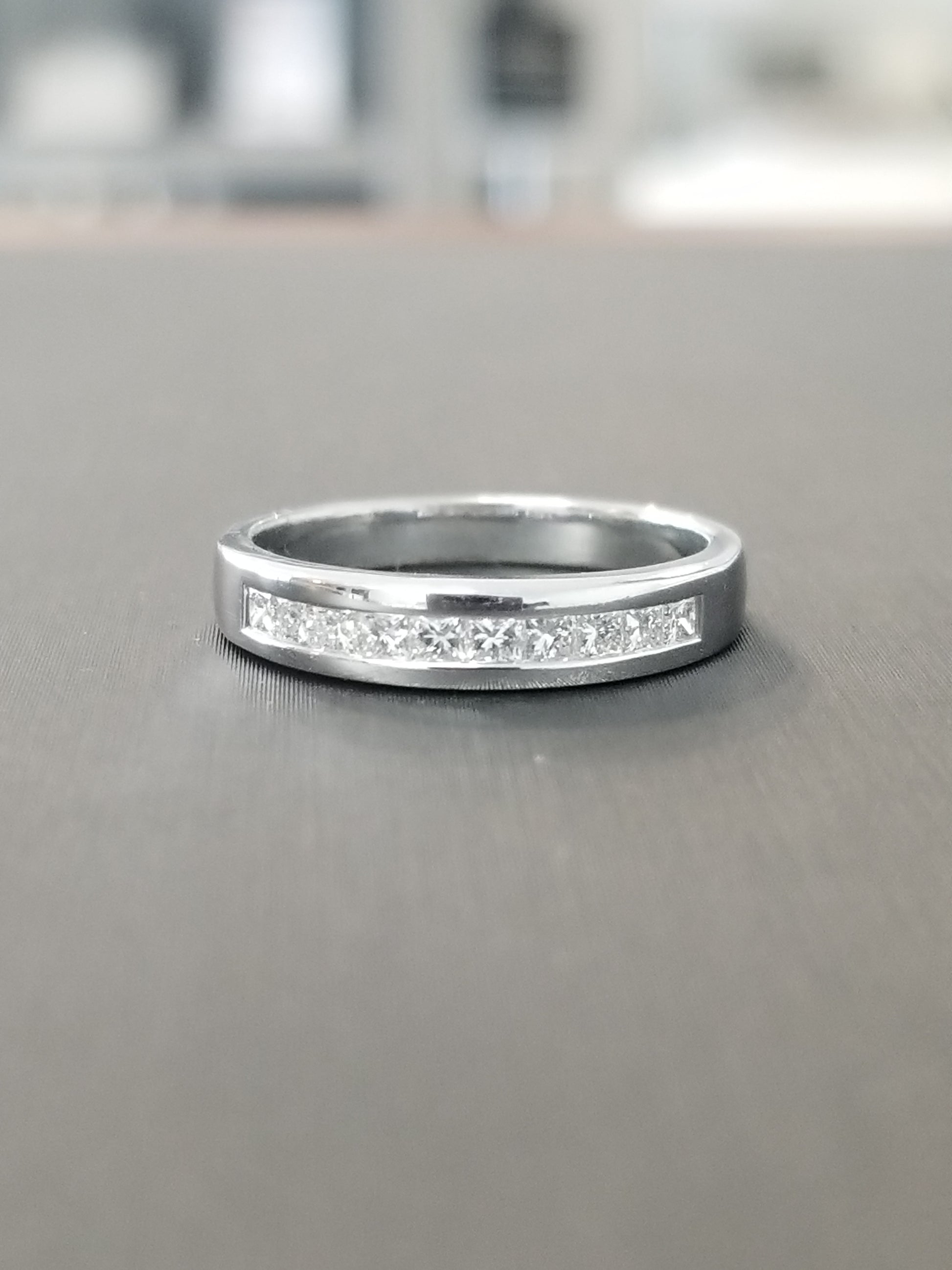 A Beautiful 18ct White Gold Channel Set Princess Cut Diamond Band.