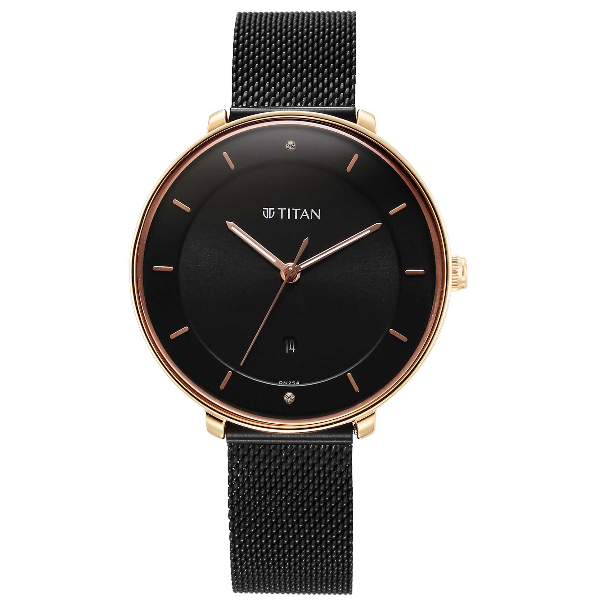 Titan Noir Black Dial Analogue Stainless Steel Strap watch for Women