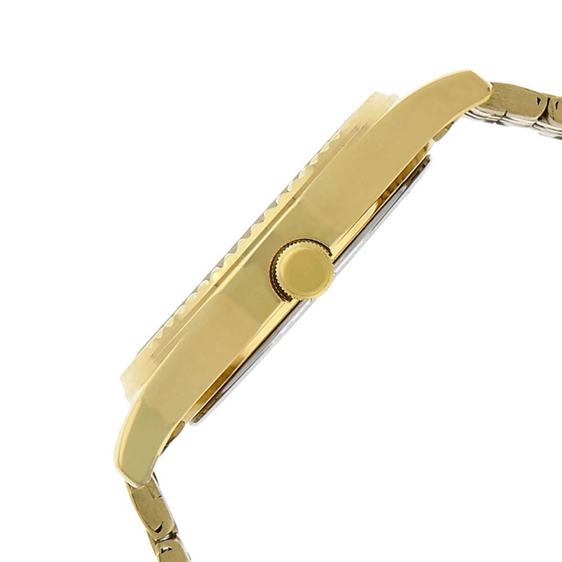 This watch includes day and date complications, providing added convenience in a sleek design. The stainless steel strap adds durability and a sophisticated touch, seamlessly integrating with the watch's refined look.