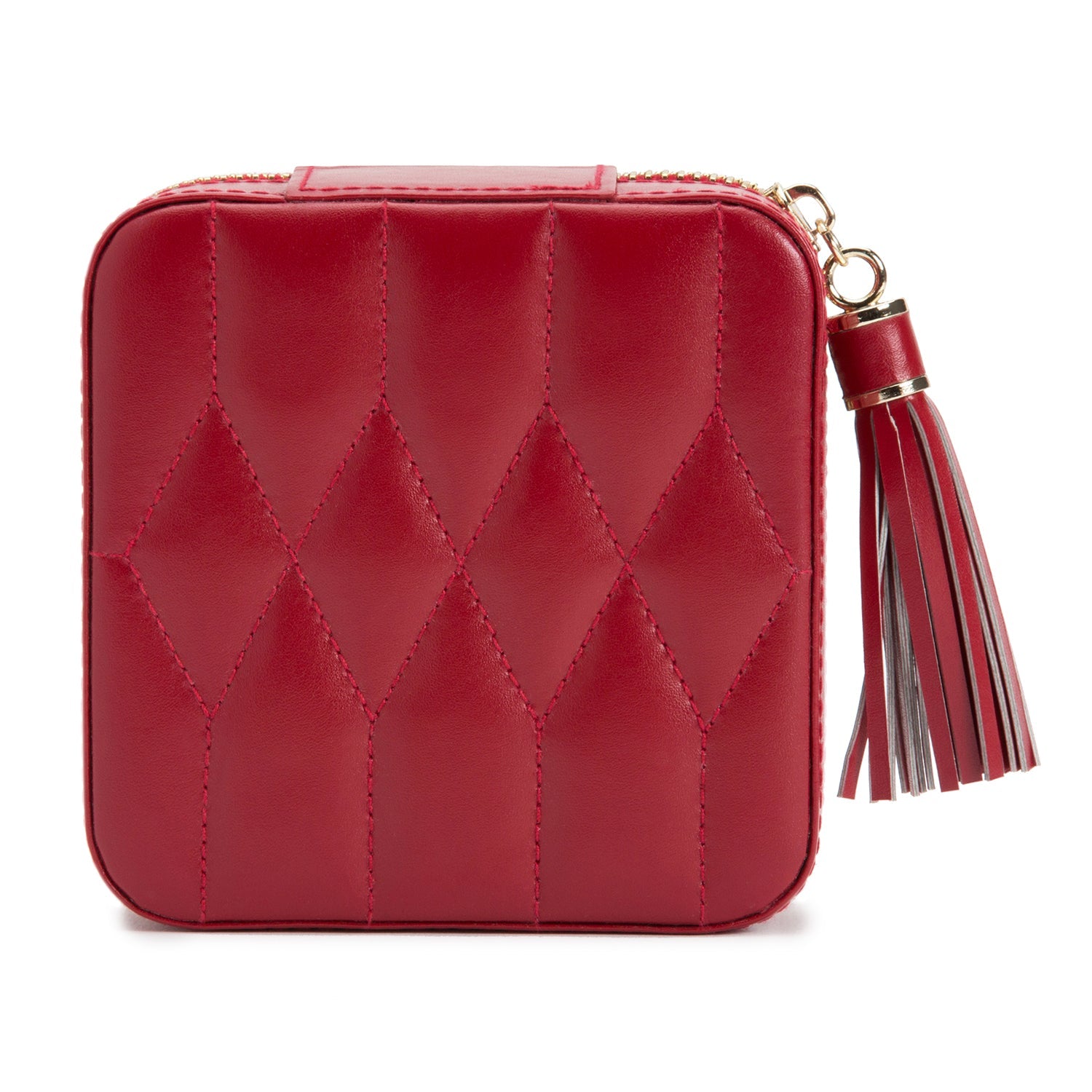 The embodiment of sophistication and style. Caroline, a timeless classic with elegant soft lines of the 50's, supple diamond quilted leather accented with gold hardware. This refined red zip travel case is the perfect home for your precious jewellery and heirlooms. Traveling with Caroline makes safekeeping your jewellery whilst on the go a snap.